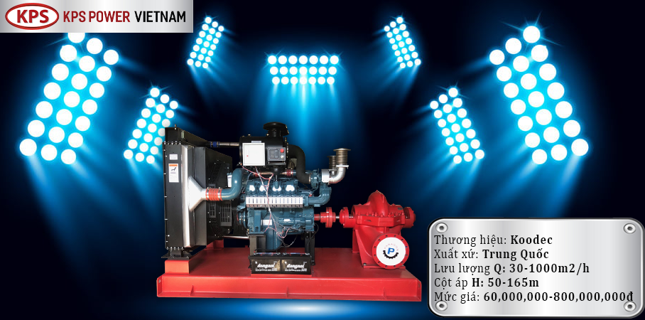 Bơm chữa cháy Koodec: Thương hiệu máy bơm Hàn Quốc. Lưu lượng Q: 30-1000m2/h, cột áp H: 50-165m. Mức giá tầm 60,000,000-800,000,000đ